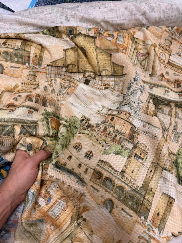 La bellissima stoffa con le immagini di Bologna